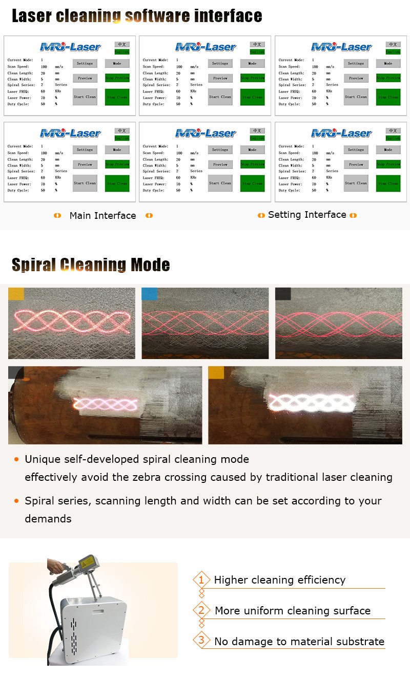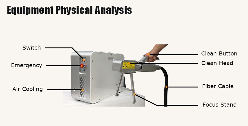 Ez a lézeres tisztító egy hordozható típus, amely nagyon alkalmas műhely, otthoni felhasználók számára. Megtisztíthatja a rozsda, a festék, a zsír, az oxidok és sok más folt kis területeit. Ebben az esetben 20 W, 30W és 50W áll rendelkezésre, és a szálkábel legfeljebb 100 méteren testreszabható. A tisztítófej nagyon könnyű, kb. 1,5 kg, hosszú távú működésre alkalmas.